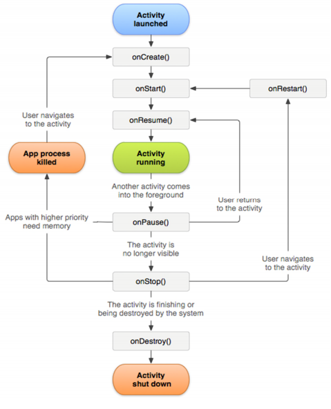 메인 엑티비티를 설명하기 전에 액티비티의 생명주기를 이해할 필요가 있다. 애플리케이션의 재시작 시