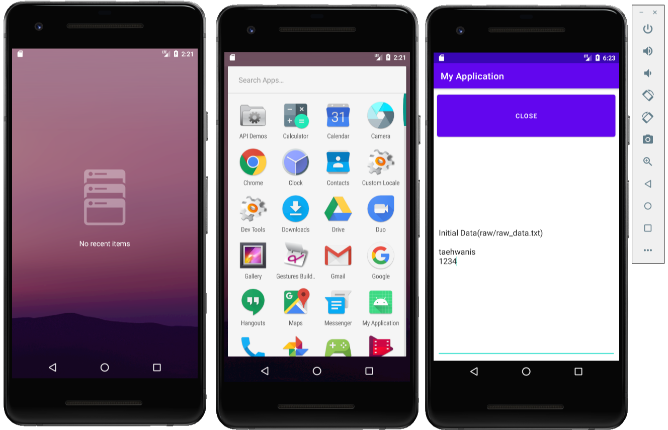 데이터 읽기는 Context.openFileInput() 메서드 호출, FileInputStream 오브젝트를 얻어서 처리하고